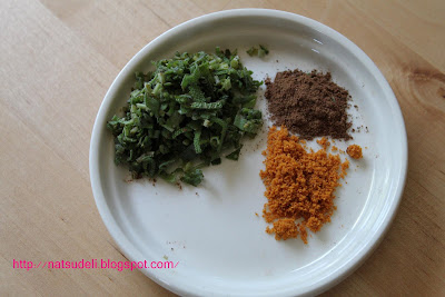 こちらはスパイス。フレッシュセージと、オールスパイス、メースです。あとは粗挽き黒胡椒とお塩で味付け。